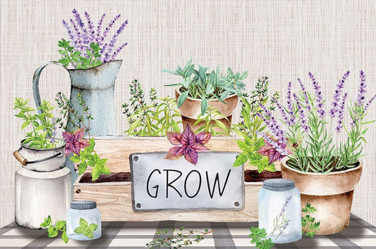 Grow Herbs White Modern Wood Framed Art Print with Double Matting by ND Art