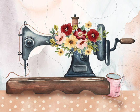 Antique Sewing Machine White Modern Wood Framed Art Print with Double Matting by ND Art