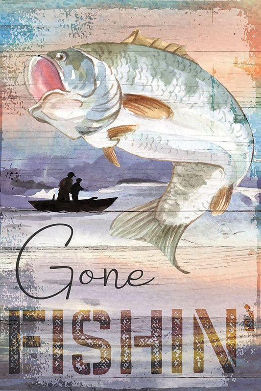 Gone Fishin White Modern Wood Framed Art Print with Double Matting by ND Art