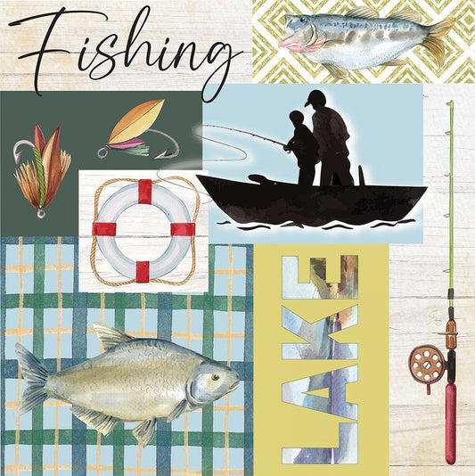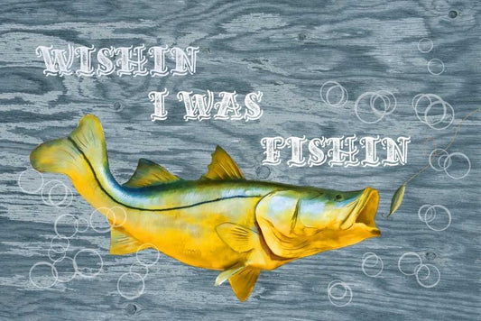 Wishin I Was Fishin White Modern Wood Framed Art Print with Double Matting by Murdock, Ramona