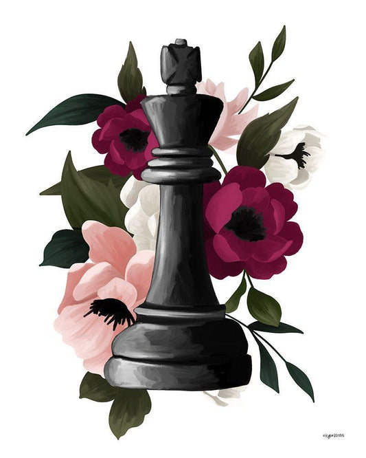 Black King Floral White Modern Wood Framed Art Print with Double Matting by Brown, Kyra