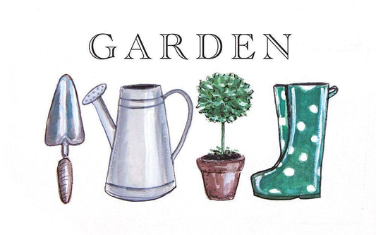 Garden Sign with Tools White Modern Wood Framed Art Print with Double Matting by Tyndall, Elizabeth