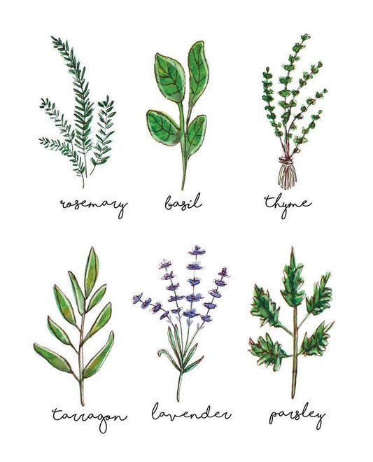 Herbs White Modern Wood Framed Art Print with Double Matting by Tyndall, Elizabeth