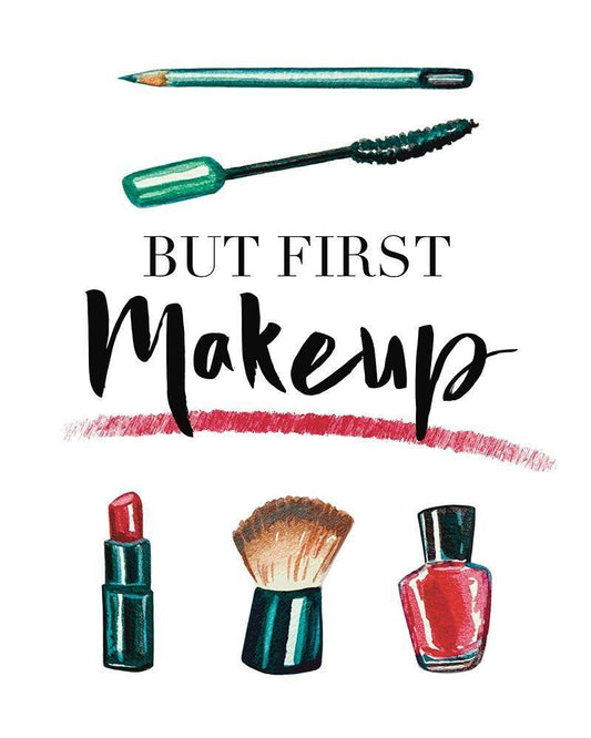 But First Makeup White Modern Wood Framed Art Print with Double Matting by Tyndall, Elizabeth