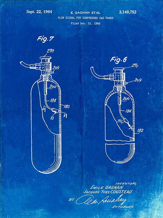 PP981-Faded Blueprint Oxygen Tank Poster White Modern Wood Framed Art Print with Double Matting by Borders, Cole