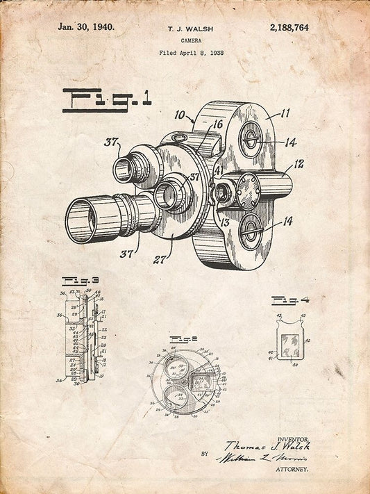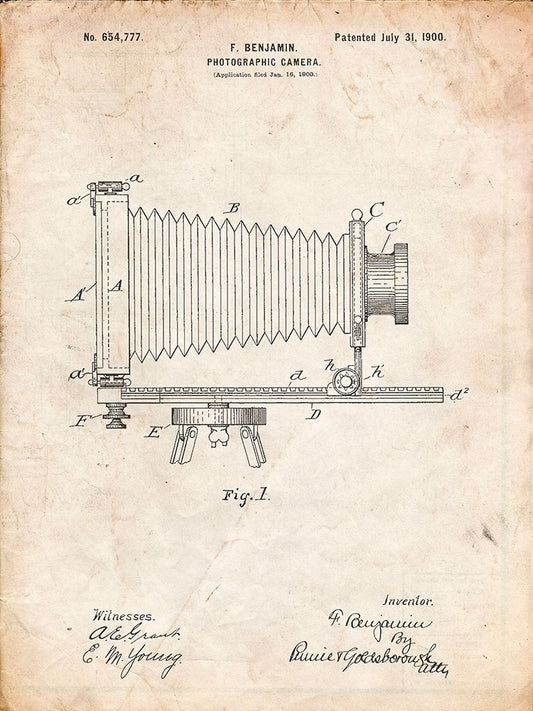 PP985-Vintage Parchment Photographic Camera Patent Poster White Modern Wood Framed Art Print with Double Matting by Borders, Cole