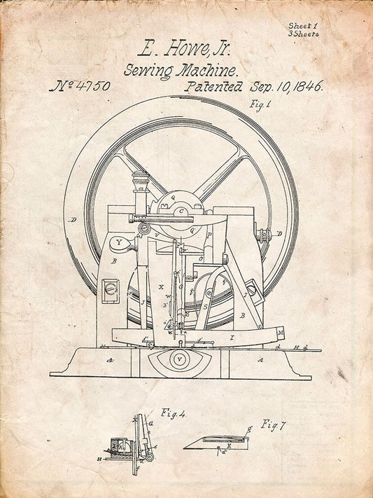 PP1035-Vintage Parchment Singer Sewing Machine Patent Poster White Modern Wood Framed Art Print with Double Matting by Borders, Cole
