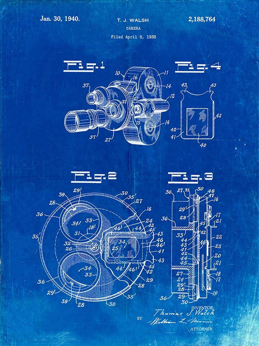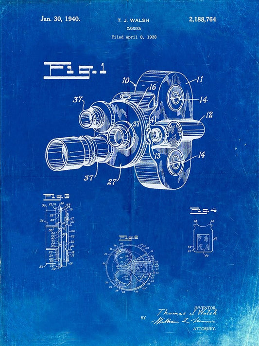PP198- Faded Blueprint Bell and Howell Color Filter Camera Patent Poster White Modern Wood Framed Art Print with Double Matting by Borders, Cole