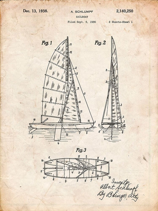 PP216-Vintage Parchment Schlumpf Sailboat Patent Poster White Modern Wood Framed Art Print with Double Matting by Borders, Cole