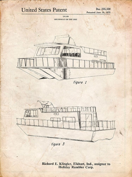 PP884-Vintage Parchment Houseboat Patent Poster White Modern Wood Framed Art Print with Double Matting by Borders, Cole