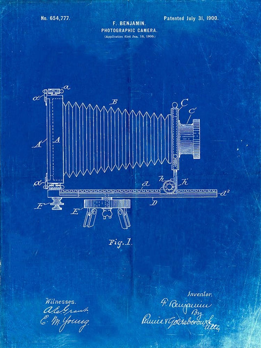 PP985-Faded Blueprint Photographic Camera Patent Poster White Modern Wood Framed Art Print with Double Matting by Borders, Cole
