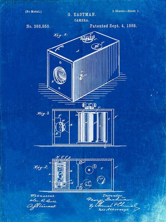 PP126- Faded Blueprint Eastman Kodak Camera Patent Poster White Modern Wood Framed Art Print with Double Matting by Borders, Cole