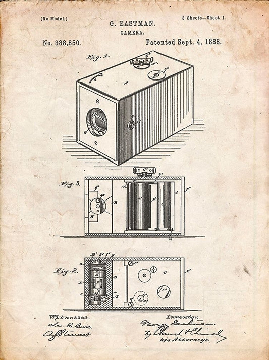 PP126- Vintage Parchment Eastman Kodak Camera Patent Poster White Modern Wood Framed Art Print with Double Matting by Borders, Cole