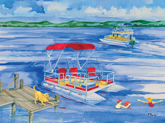 Pontoon Lake White Modern Wood Framed Art Print with Double Matting by Brent, Paul
