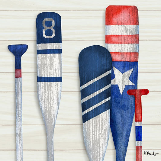Port Oars Horizontal - Blue White Modern Wood Framed Art Print with Double Matting by Brent, Paul