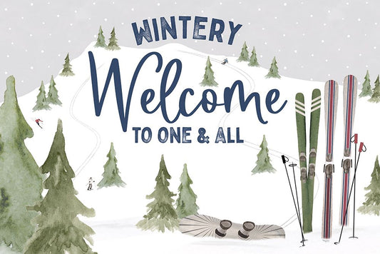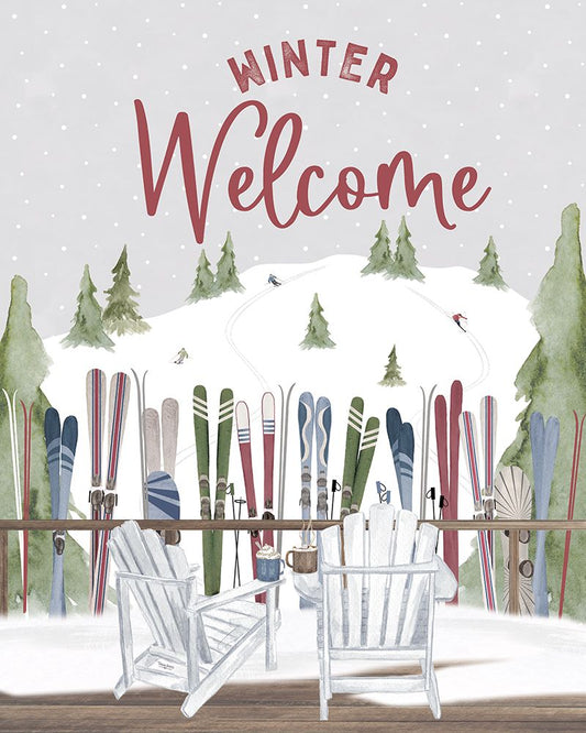 Winter Mountain Getaway portrait VII-Winter Welcome Black Ornate Wood Framed Art Print with Double Matting by Tara Reed