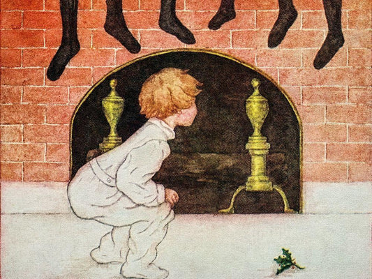 Vintage Christmas Poster White Modern Wood Framed Art Print with Double Matting by F.A. Owen Pub. Co