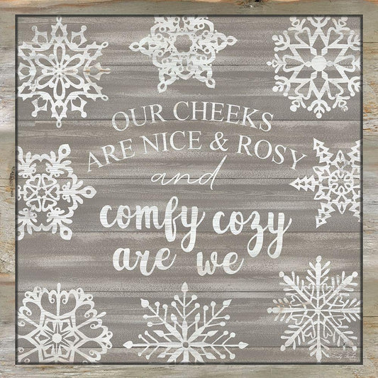 Comfy Cozy Snowflakes White Modern Wood Framed Art Print with Double Matting by Jacobs, Cindy