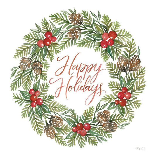 Happy Holidays Wreath White Modern Wood Framed Art Print with Double Matting by Jacobs, Cindy