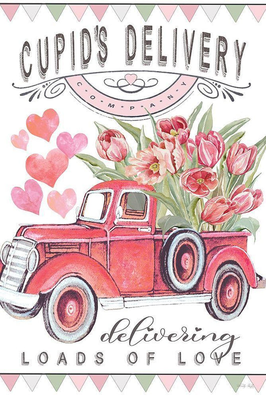 Cupids Delivery Truck White Modern Wood Framed Art Print with Double Matting by Jacobs, Cindy