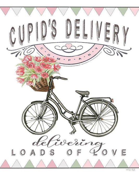 Cupids Delivery Bicycle White Modern Wood Framed Art Print with Double Matting by Jacobs, Cindy