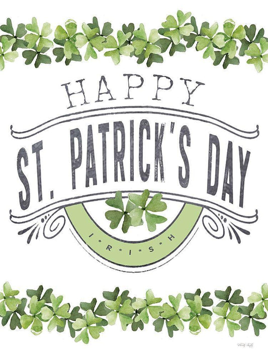 Happy St. Patricks Day White Modern Wood Framed Art Print with Double Matting by Jacobs, Cindy