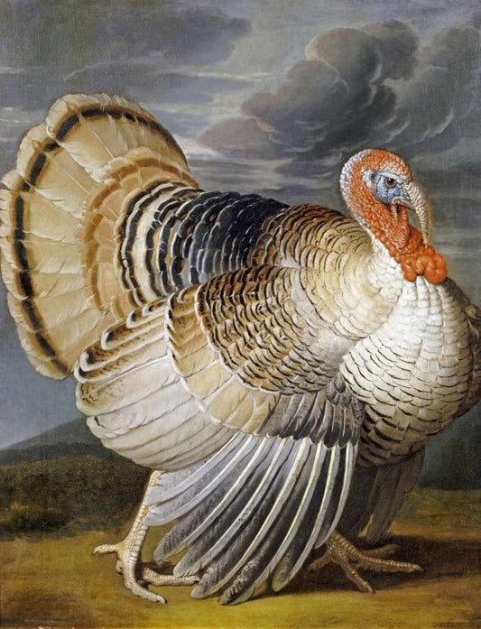 A Turkey In a Landscape Black Ornate Wood Framed Art Print with Double Matting by Wenceslaus, Peter