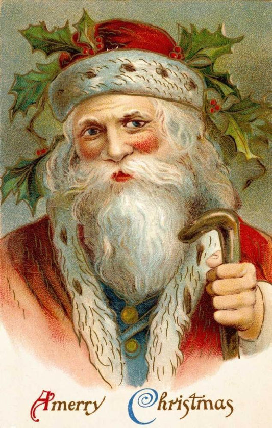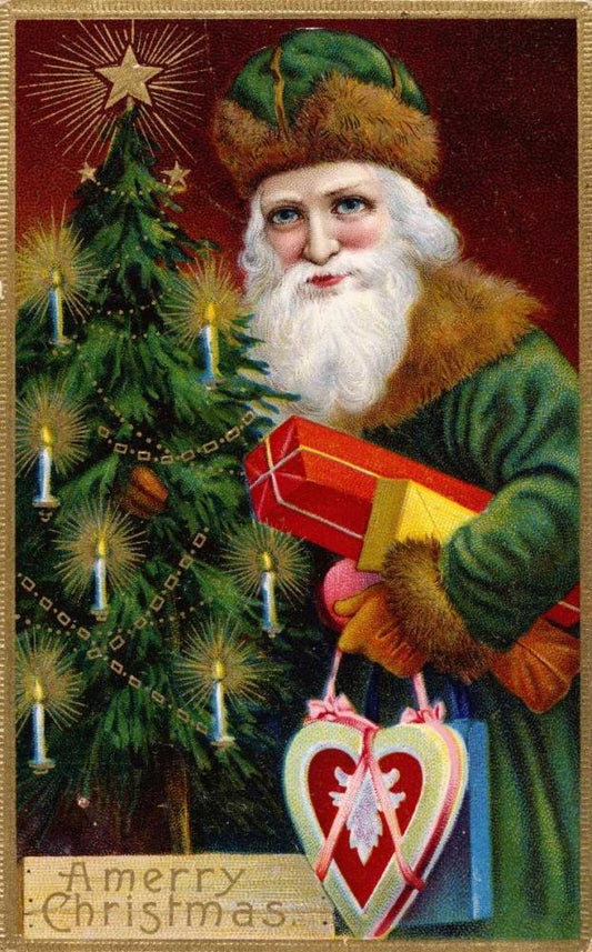 Vintage Santa Black Ornate Wood Framed Art Print with Double Matting by Unknown