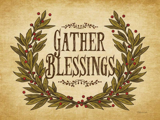 Gather Blessings I Black Ornate Wood Framed Art Print with Double Matting by Marrott, Stephanie