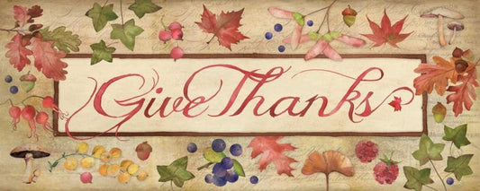 Give Thanks Black Ornate Wood Framed Art Print with Double Matting by Marrott, Stephanie