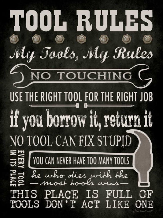 Tool Rules - Black Black Ornate Wood Framed Art Print with Double Matting by Marrott, Stephanie