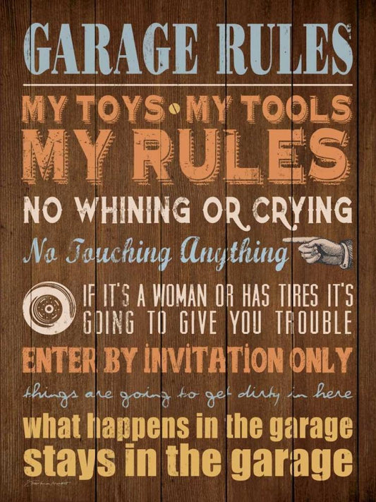 Garage Rules Black Ornate Wood Framed Art Print with Double Matting by Marrott, Stephanie