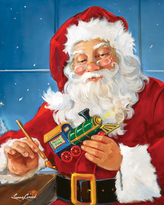 Santas Workshop Black Ornate Wood Framed Art Print with Double Matting by Comish, Susan