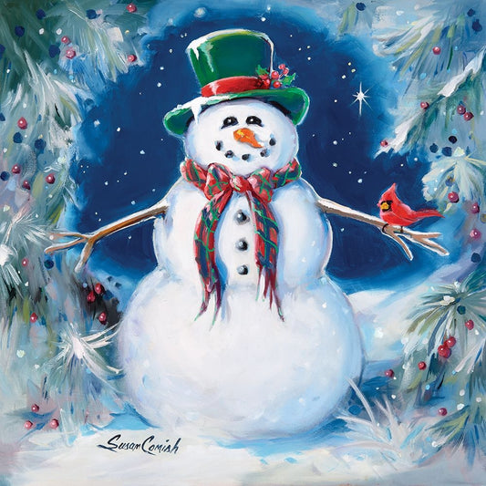 Snowman and Friends Black Ornate Wood Framed Art Print with Double Matting by Comish, Susan