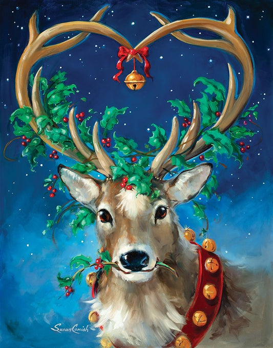 Santas Reindeer Black Ornate Wood Framed Art Print with Double Matting by Comish, Susan