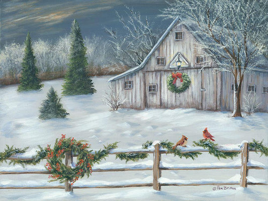 Wintery Barn White Modern Wood Framed Art Print with Double Matting by Britton, Pam