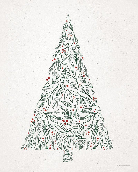 Floral Christmas Tree II White Modern Wood Framed Art Print with Double Matting by Lady Louise Designs