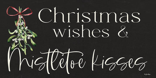 Christmas Wishes And Mistletoe Kisses White Modern Wood Framed Art Print with Double Matting by Boyer, Susie