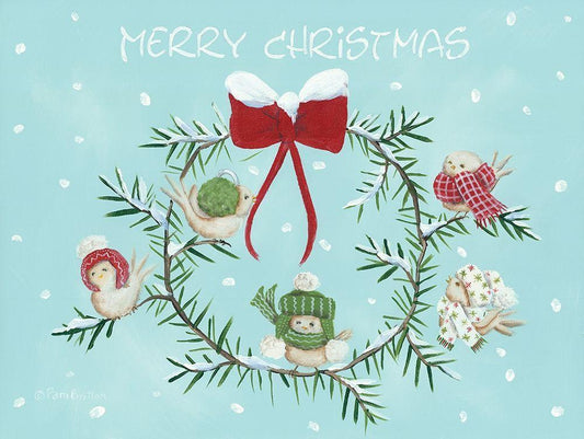Winter Birds Christmas Wreath White Modern Wood Framed Art Print with Double Matting by Britton, Pam