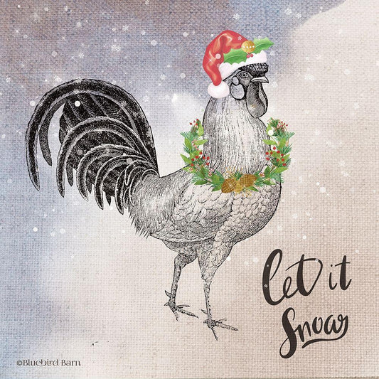 Vintage Christmas Be Merry Rooster White Modern Wood Framed Art Print with Double Matting by Bluebird Barn