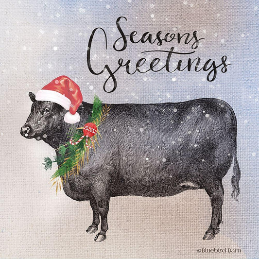 Vintage Christmas Be Merry Cow White Modern Wood Framed Art Print with Double Matting by Bluebird Barn