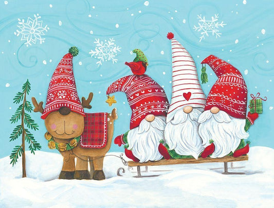 Elf Gnome Trio with Reindeer White Modern Wood Framed Art Print with Double Matting by Kater, Diane