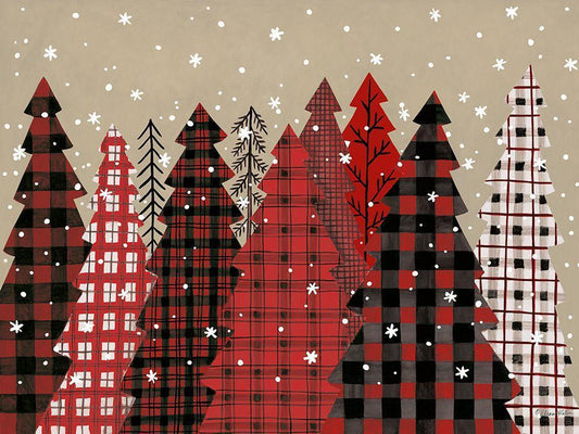 Patterned Trees White Modern Wood Framed Art Print with Double Matting by Kater, Diane