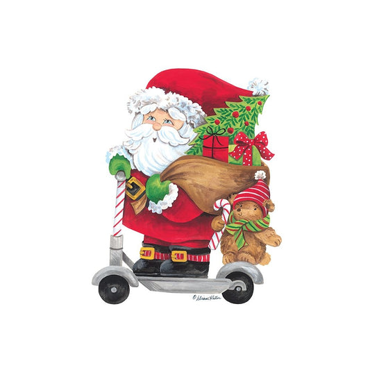 Scootin Santa White Modern Wood Framed Art Print with Double Matting by Kater, Diane