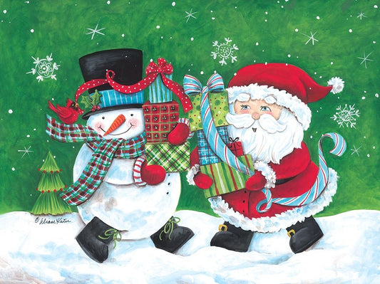 Snowman And Santa Friends White Modern Wood Framed Art Print with Double Matting by Kater, Diane