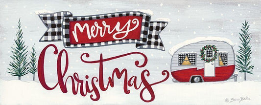 Merry Christmas Camper White Modern Wood Framed Art Print with Double Matting by Baker, Sara