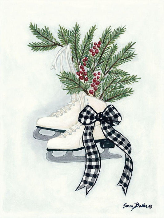 Vintage Winter Ice Skates White Modern Wood Framed Art Print with Double Matting by Baker, Sara