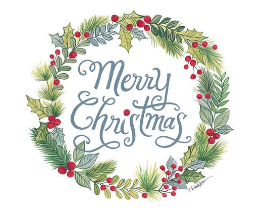 Merry Christmas Wreath White Modern Wood Framed Art Print with Double Matting by Kater, Diane