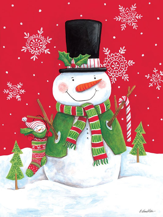 Snowman with Candy Cane Light White Modern Wood Framed Art Print with Double Matting by Kater, Diane