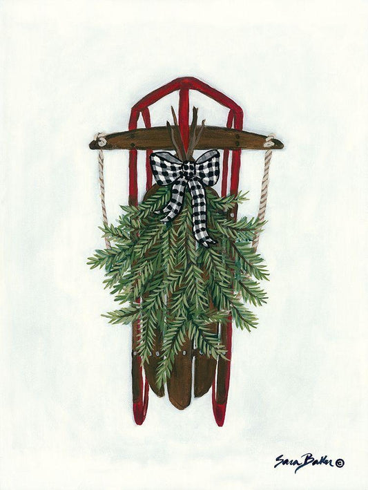 Vintage Winter Sled White Modern Wood Framed Art Print with Double Matting by Baker, Sara